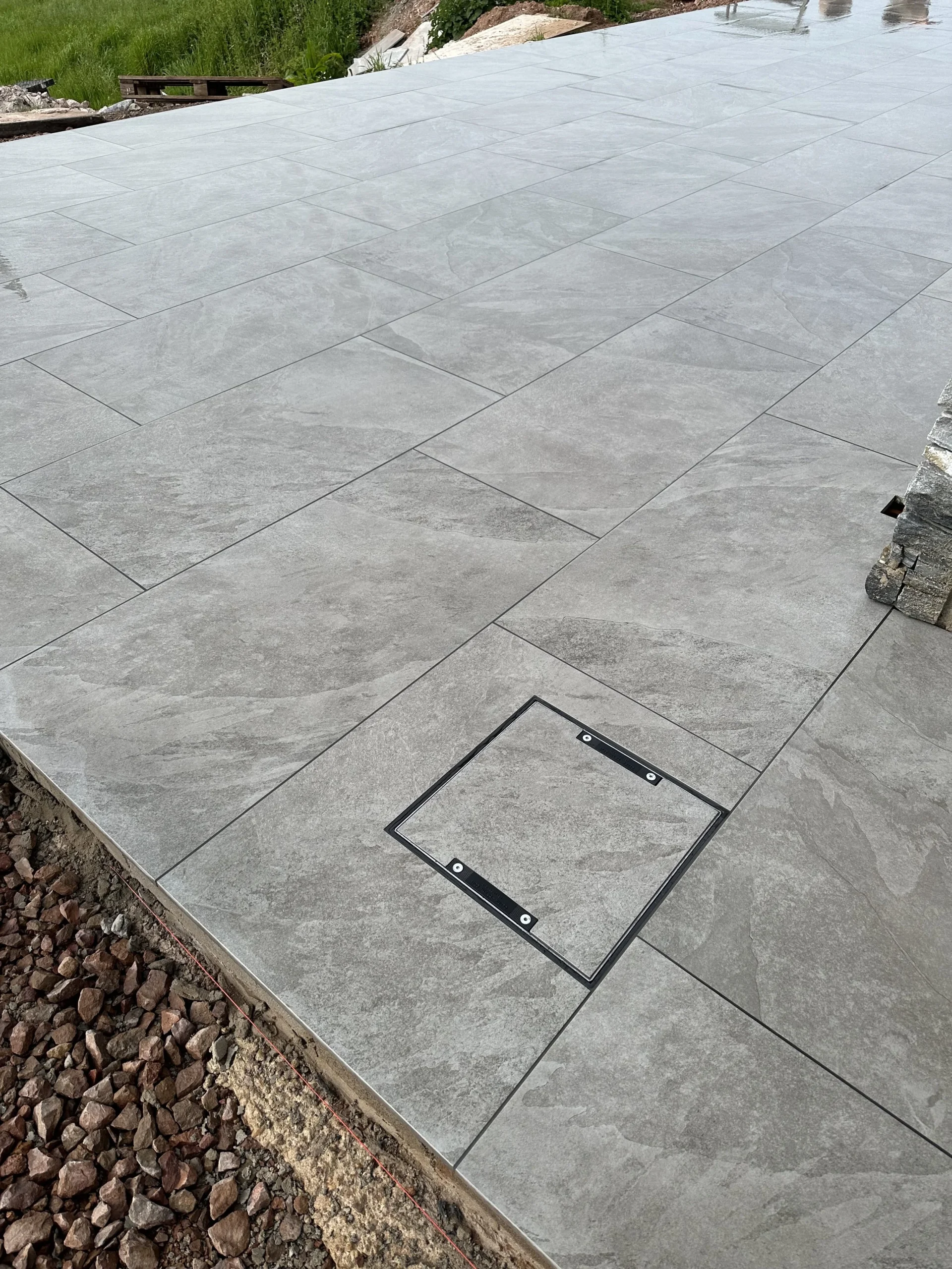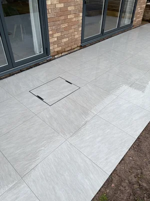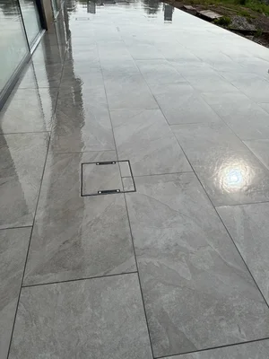 Outdoor porcelain is designed with anti-slip ratings. We use the correct product and jointing to keep grip reliable in local conditions.