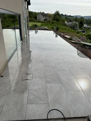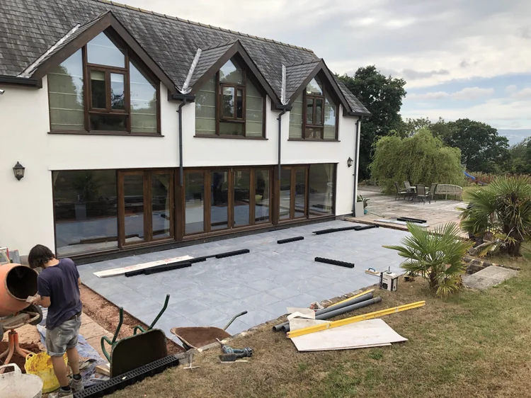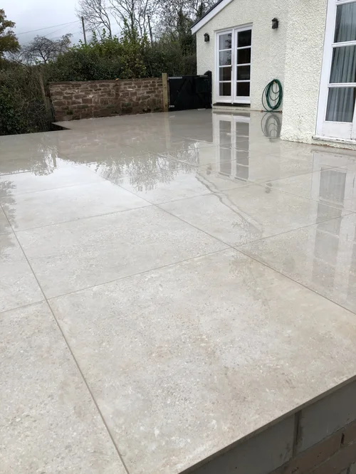 Porcelain paving is a favourite for a clean, contemporary look, while limestone and sandstone are well-suited to period properties and rural settings—typical of the areas we serve, including Monmouthshire, Ross-on-Wye, the Wye Valley, Abergavenny, Usk, and Chepstow